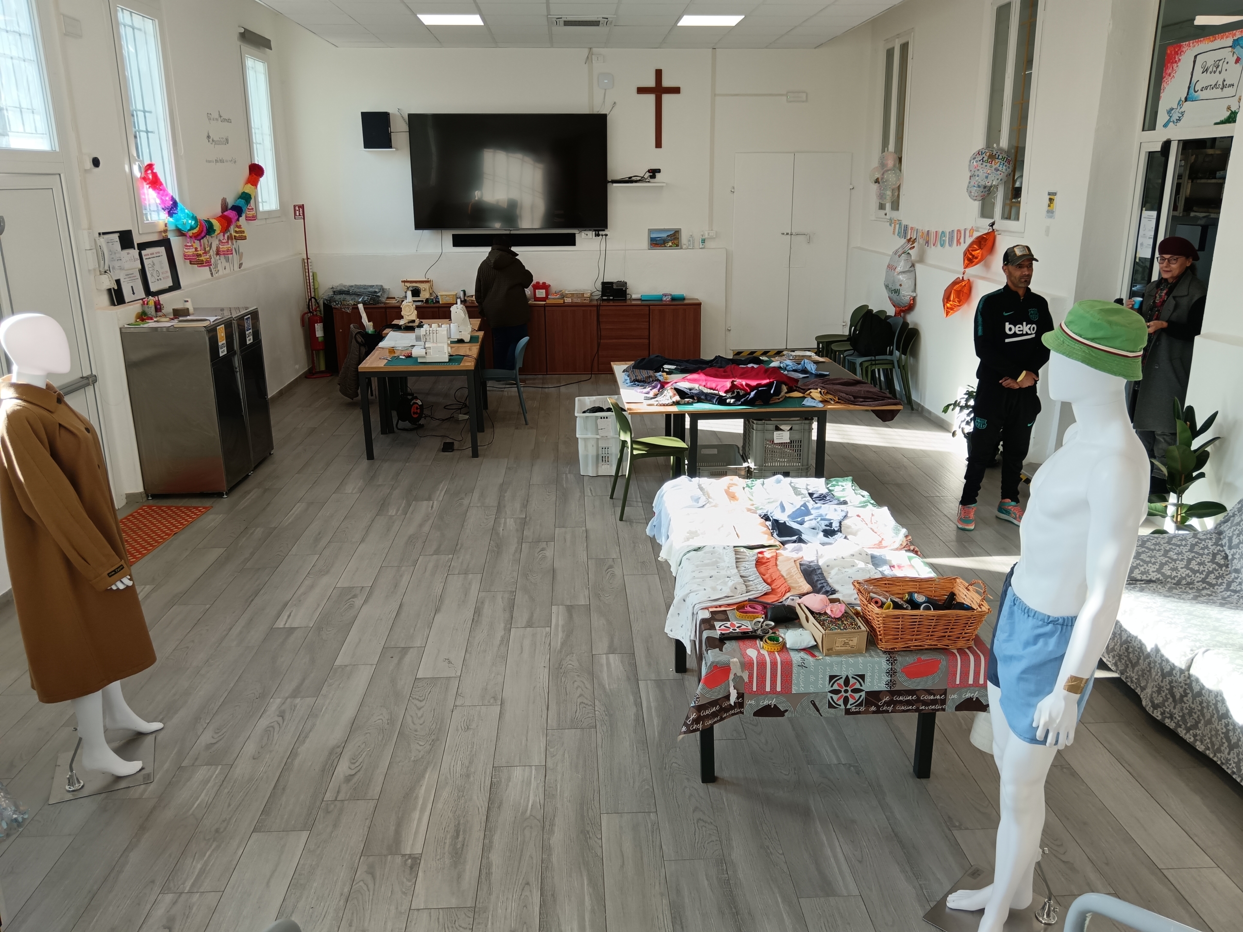 un laboratorio dove vengono riutilizzati gli abiti che non si riesce a distribuire al guardaroba e a cui viene data una seconda vita