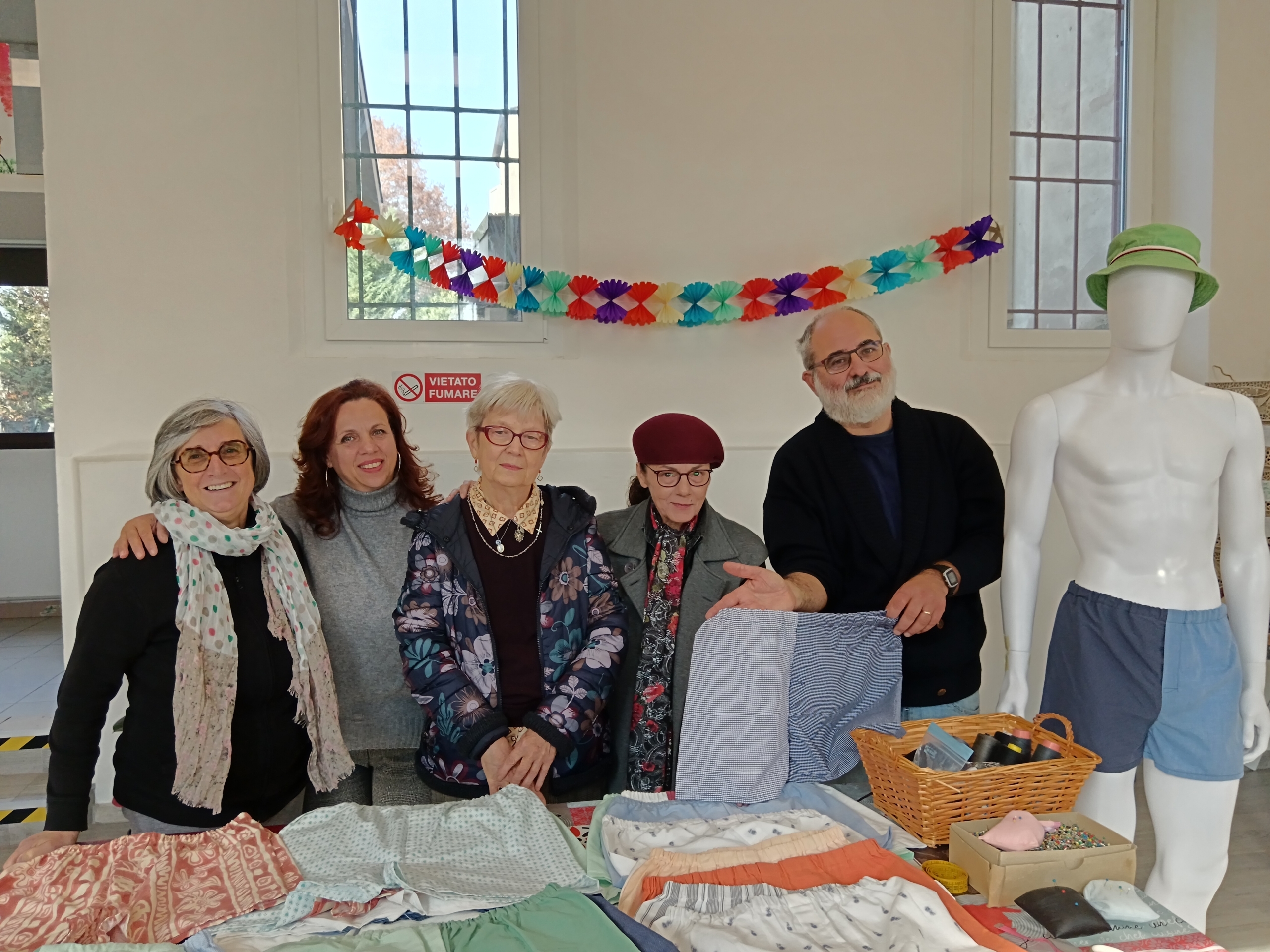 “Da una camicia a maniche lunghe recuperiamo più del 50% creando un boxer da uomo, copriamo tutte le taglie, dalla s alla xl. Una parte di questa biancheria va al guardaroba e una parte in carcere per i detenuti. Adesso stiamo lavorando sui berretti per l’inverno, da un maglione ne possiamo ricavare anche 3 o 4”.