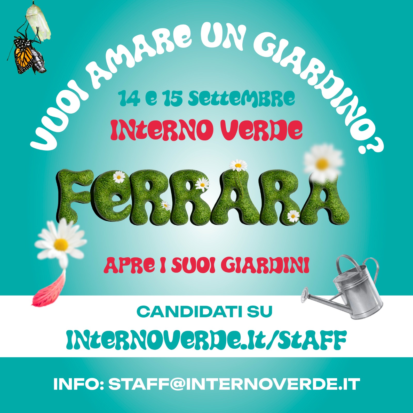 Se siete giovani e particolarmente appassionati di giardini e avete voglia di vederne di veramente unici, in certi casi davvero impensabili dietro a porte e muri anonimi, Interno Verde propone agli studenti under30 che vivono a Ferrara di partecipare attivamente al festival come volontari, nel custodire gli spazi ma anche nel fornire informazioni di carattere botanico, storico e architettonico ai visitatori.