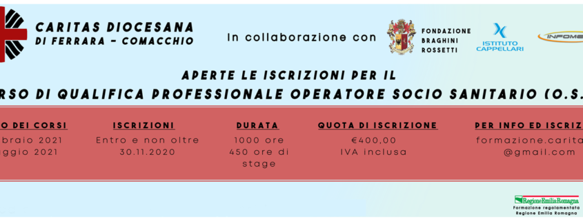 1000 ore, di cui 450 ore di stage applicativo e professionalizzante. Lo stage, avente carattere applicativo e professionalizzante, sarà svolto nelle sedi di strutture del territorio. La Fondazione Braghini-Rossetti, partner del progetto, metterà a disposizione, le sue strutture. Per il rilascio della qualifica di OSS, l’esame di qualifica è rivolto solo a coloro che abbiano frequentato con esito positivo almeno il 90% del percorso formativo. Consiste in una prova pratica che riflette una simulazione lavorativa-professionale e in un colloquio, volti ad accertare il possesso di tutte le capacità e conoscenze previste dallo standard professionale regionale. In caso di superamento dell’esame, viene rilasciato il Certificato di qualifica OSS, valore su tutto il territorio nazionale ai sensi della Legge regionale n. 12/2003 (di solito il rilascio dell’attestato avviene in base alla DGR 739/2013) in tema di istruzione, formazione e lavoro e dell’Accordo nazionale sul profilo e la formazione dell’OSS sancito il 22 febbraio 2001 in Conferenza Stato/Regioni.