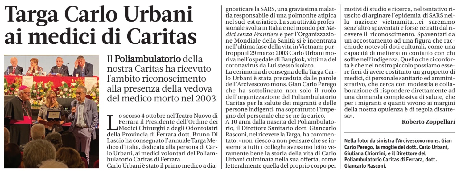 La targa “Medico d’Italia” al Poliambulatorio di Caritas Ferrara