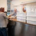 Il servizio mensa parte la mattina con le colazioni: i volontari arrivano tra le 7 e le 7:30, preparano il caffè e le paste, che solitamente vengono offerte da pasticcerie o forni, ma, per sicurezza, in dispensa biscotti e brioches confezionate ci sono sempre, altro bene da mettere nella lista della spesa da “donare”.