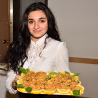 Sopra la tavola: салат “Оливье” (insalata veramente russa), poulet Directeur général, beignet haricot, vareniki con le patate, “میرزاقاسمی” – بادمجان،گوجهفرنگی،تخممرغ،سیر،ریحان (“MirzaGasemi” – melanzane, pomodori, uova, aglio, basilico), cioccolata con le nocciole (perché Rachid dice che non sa proprio cucinare ma gli pareva brutto presentarsi a mani vuote), vino del cognato (di Michele, la cui sorella ha sposato un vignaiuolo).